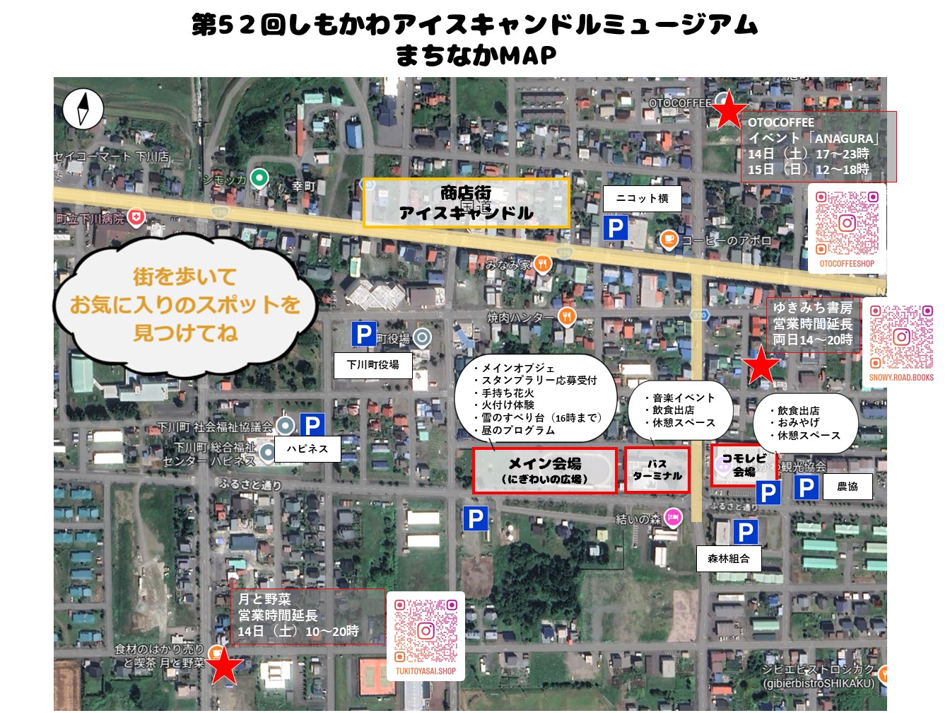 飲食店の他にも、会場内スポットやアイスキャンドル点灯のご協力等でスタンプを集めることが出来ますので、町外からお越しの方も当日スタートでぜひご参加くださいませ♪